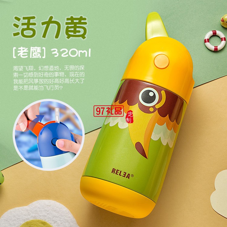 高檔兒童保溫杯吸管杯學(xué)生水杯可愛(ài)便攜水壺不銹鋼杯子 可定制logo
