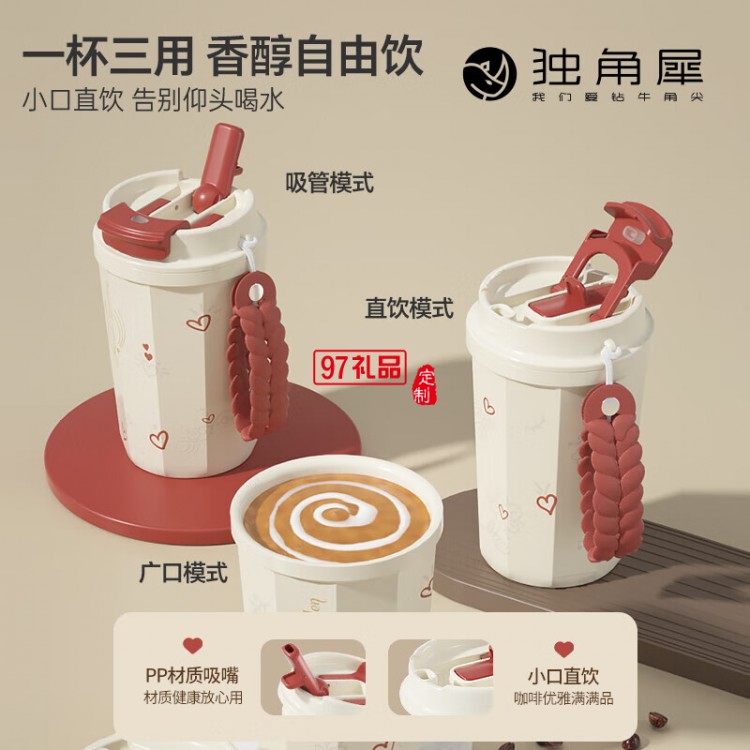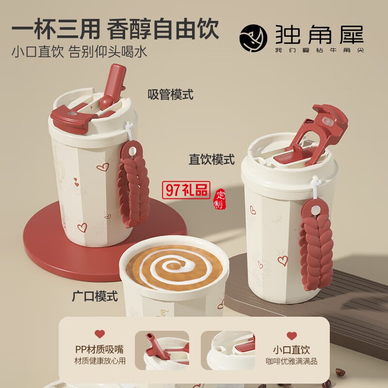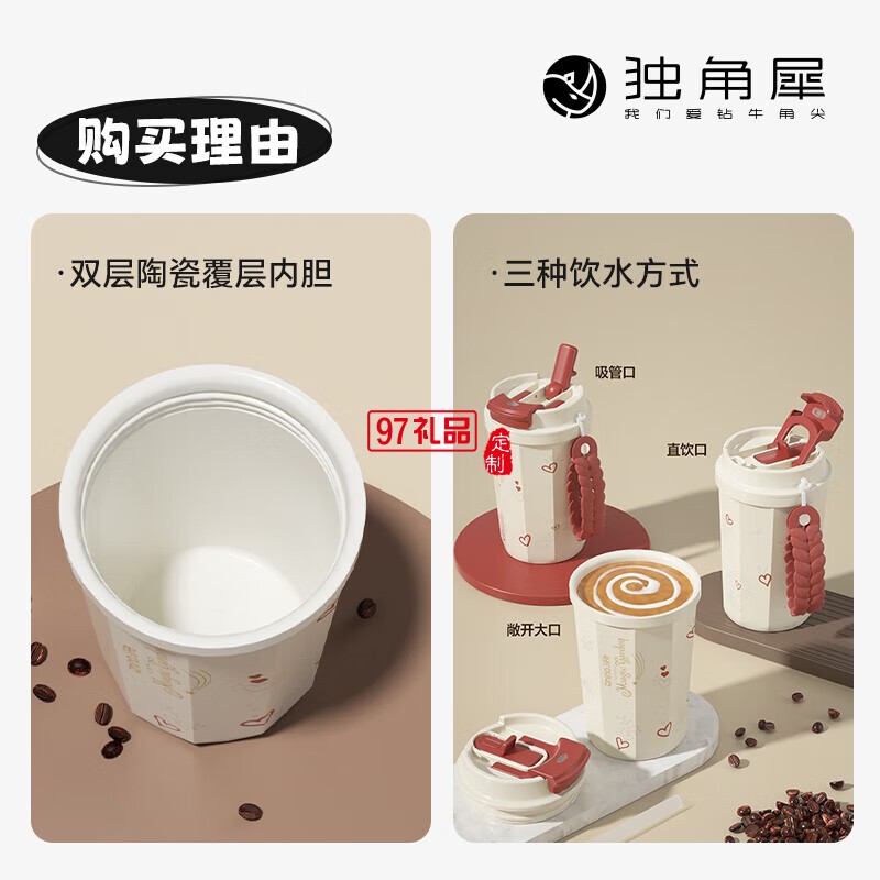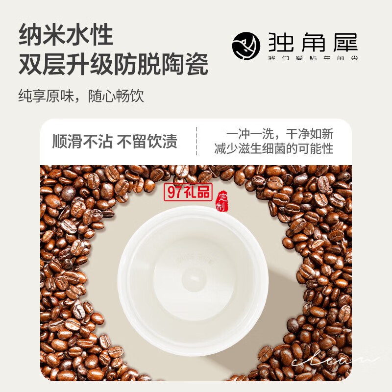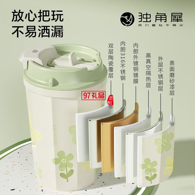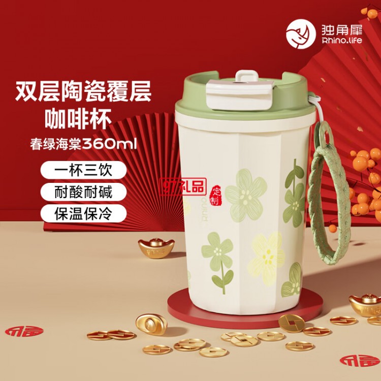 獨角犀春綠海棠雙飲口陶瓷內(nèi)膽咖啡杯