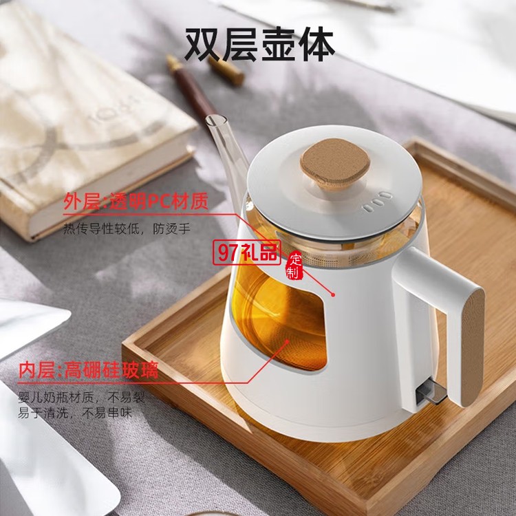 鄰鹿 燒水壺玻璃電水壺煮水壺辦公室熱水壺煮茶器定制公司廣告禮品