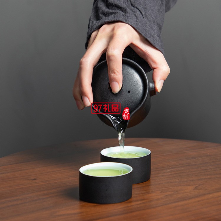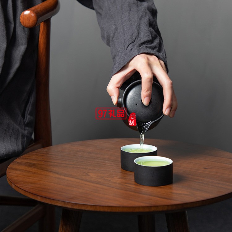 快客杯一壺二杯便攜式小包創(chuàng)意簡約黑陶瓷定制隨身小旅行茶具套裝