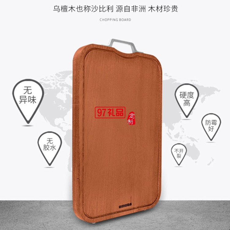 歐美達(dá)烏檀木菜板實(shí)木質(zhì)砧板廚房粘板切菜板定制公司廣告禮品