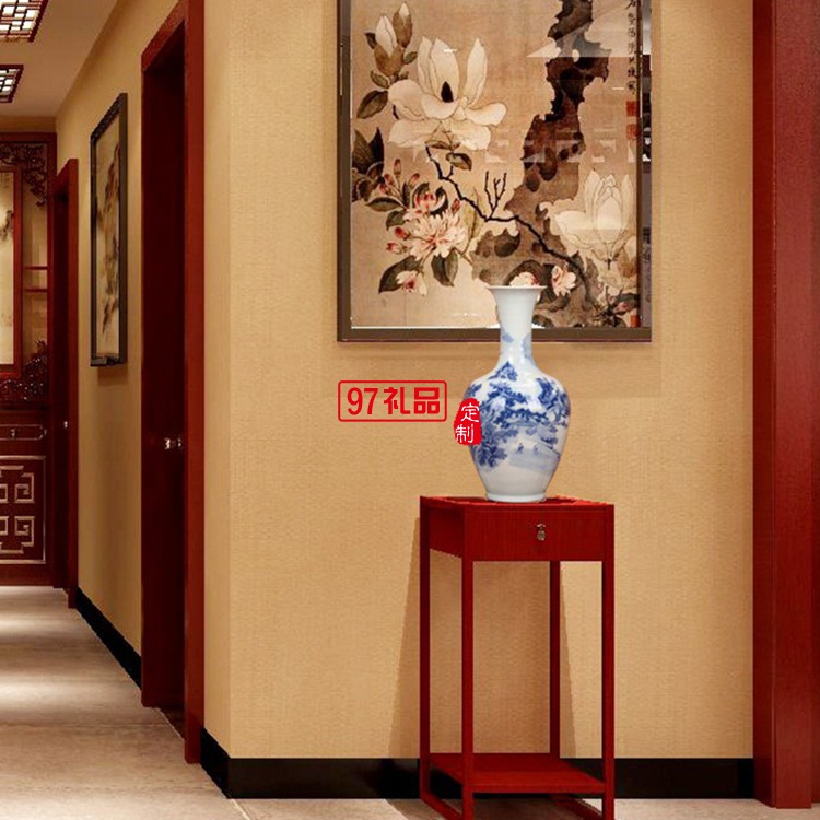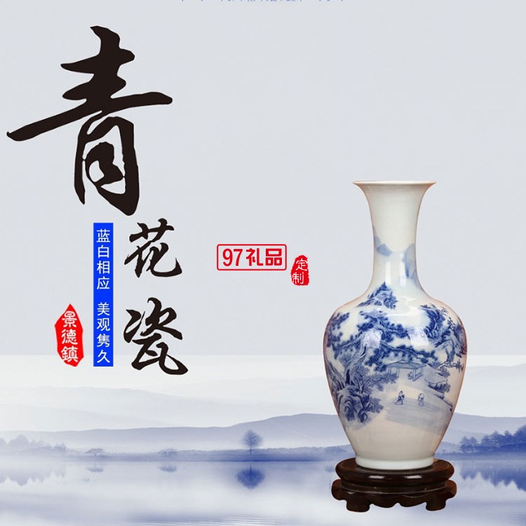 景德鎮(zhèn)陶瓷器 青花山水美人尖花瓶 家居客廳裝飾工藝品插花擺件