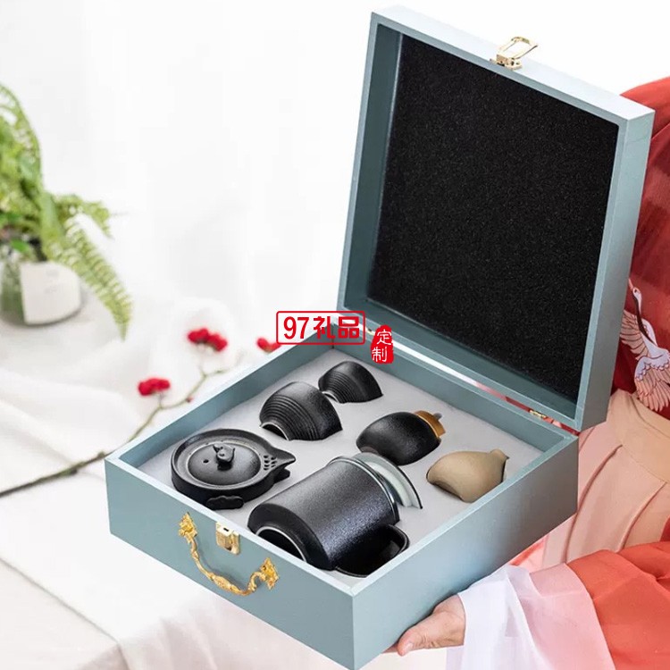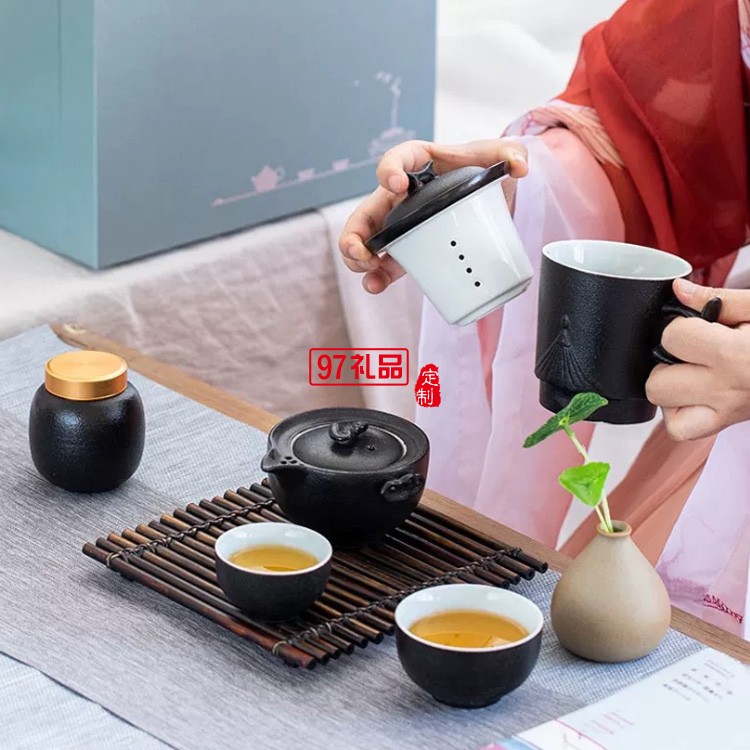 陶瓷茶具粗陶茶杯快客茶具套裝 茶葉罐商務(wù)送禮 可定制logo