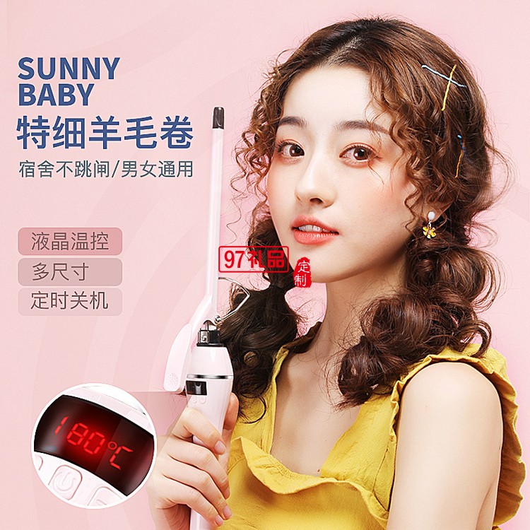 9mm卷發(fā)棒LCD液晶羊毛卷發(fā)器陶瓷泰迪超細燙美發(fā)定制公司廣告禮品