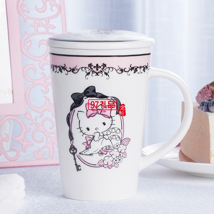 新款卡通兒童杯子帶蓋 創(chuàng)意陶瓷杯禮品杯子定制