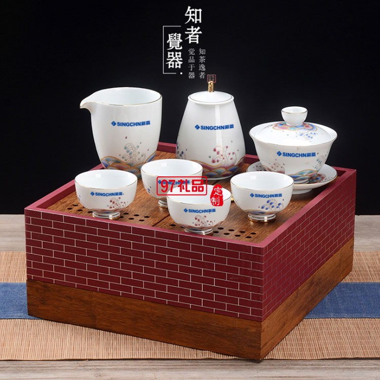新晨定制新款玉瓷茶具套裝 商務(wù)禮品茶具套裝 可定制logo