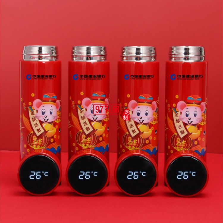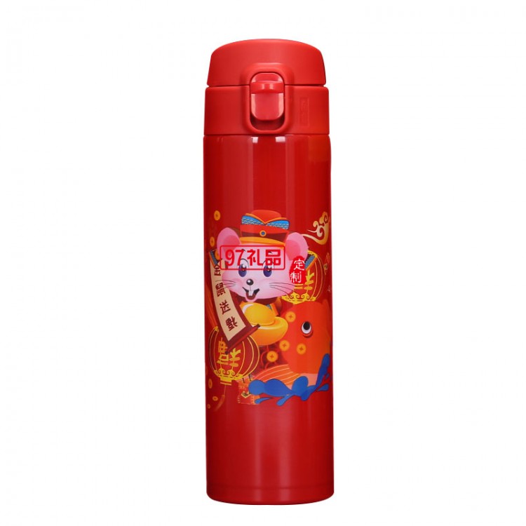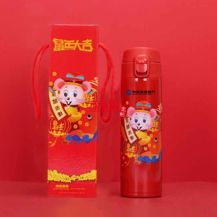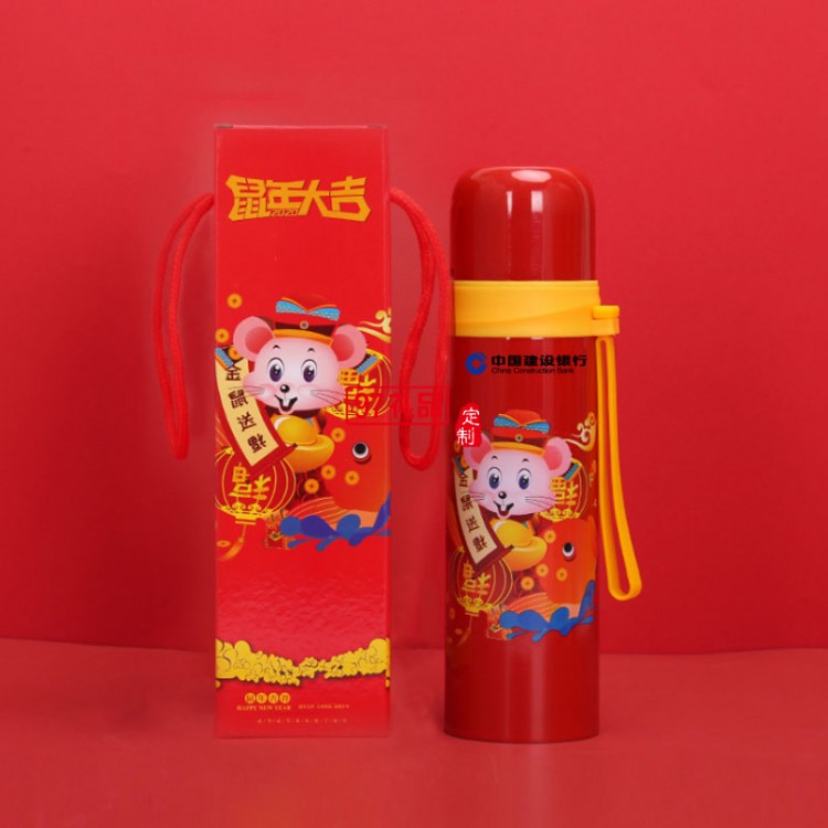 2020鼠年大吉開門紅保溫杯金鼠送福溫度 可定制logo
