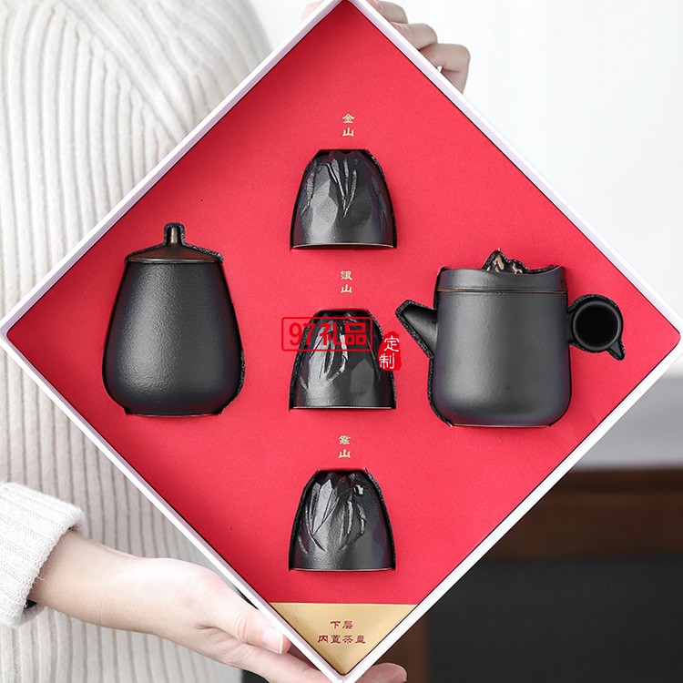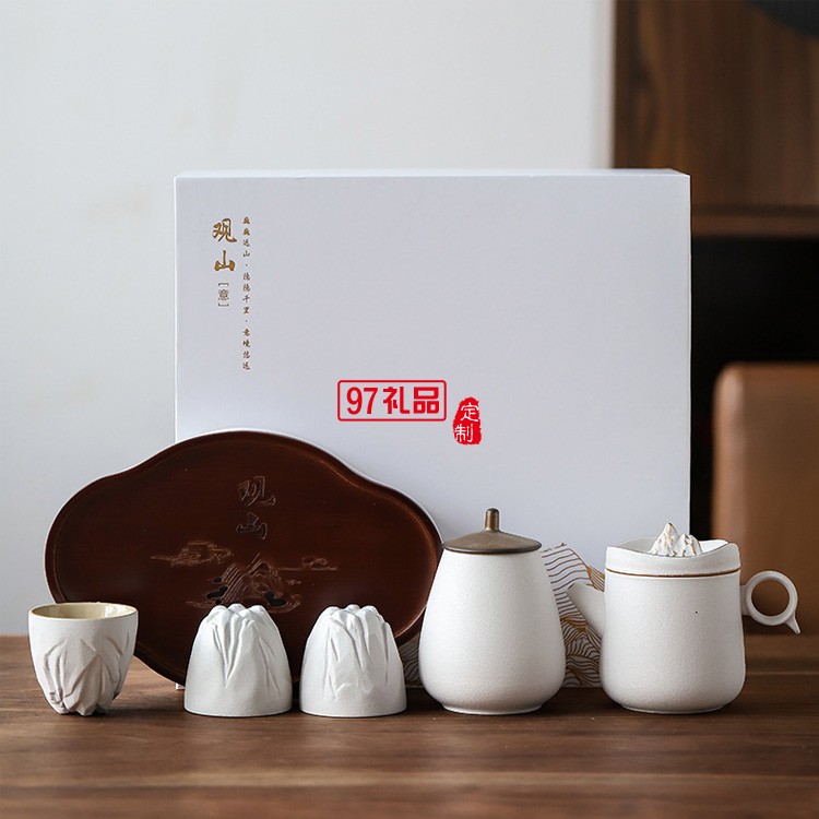 德化陶瓷創(chuàng)意觀山茶具套裝粗陶便攜旅行茶具配茶盤商務(wù)禮品