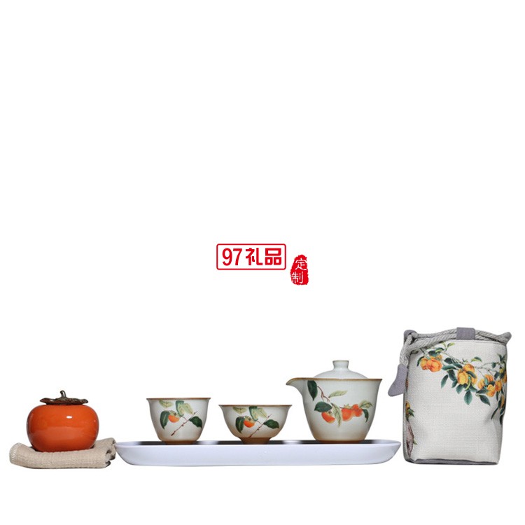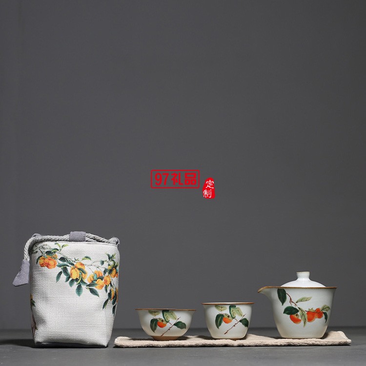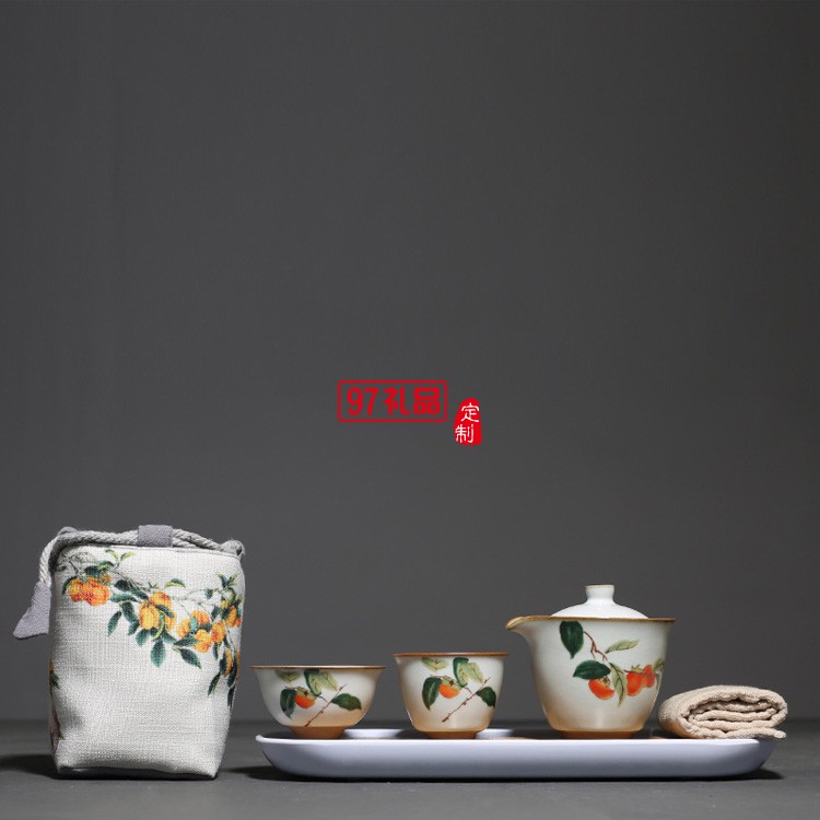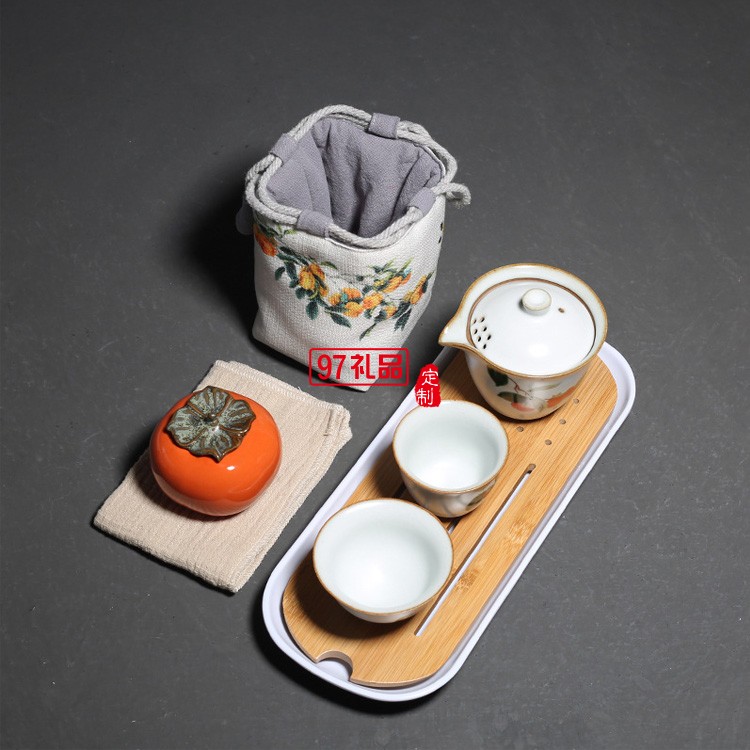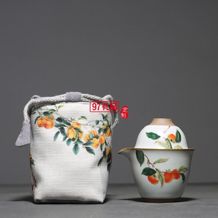 汝窯復(fù)古柿子快客杯一壺二杯茶具套裝布包便攜旅行套組