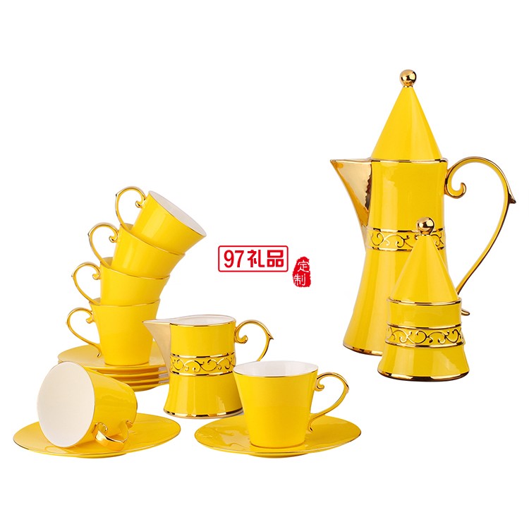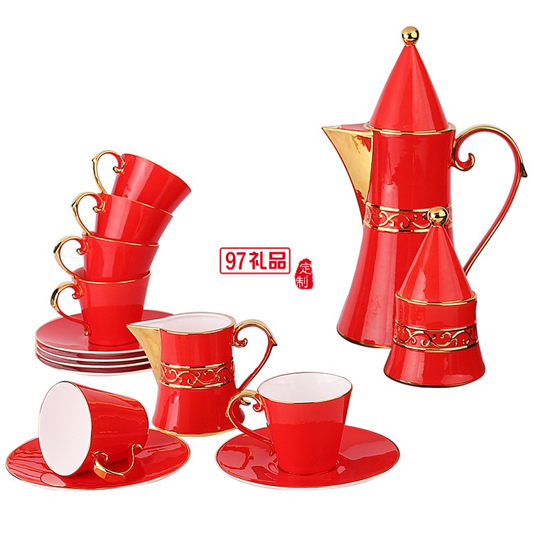 配套方式:咖啡壺1個、奶壺1個、糖罐1個、咖啡杯子6個、咖啡碟子6個