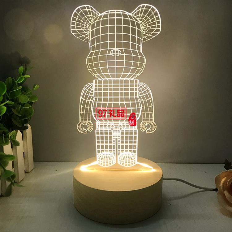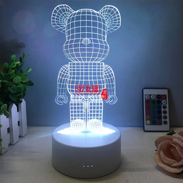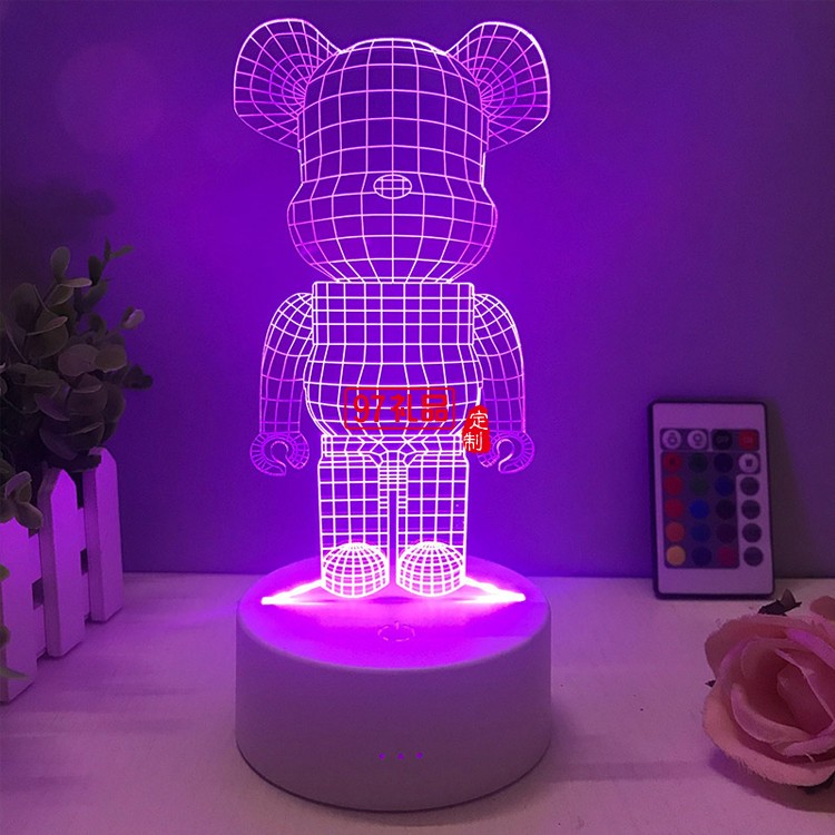 暴力熊小夜燈潮牌積木充電七彩3D臺燈酒吧臥室床頭定制公司廣告禮品