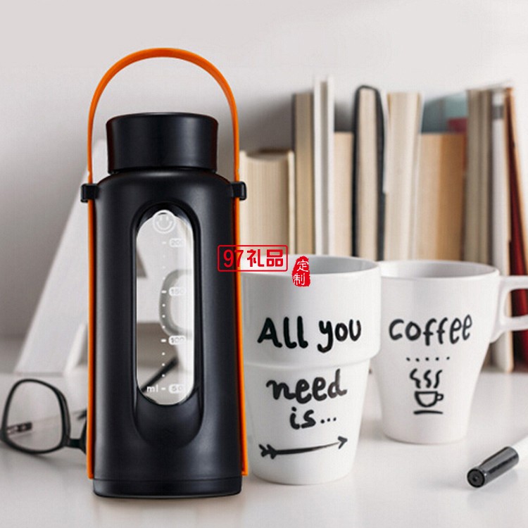 硅膠提繩簡(jiǎn)約風(fēng)格 手提風(fēng)格玻璃杯 定制廣告杯