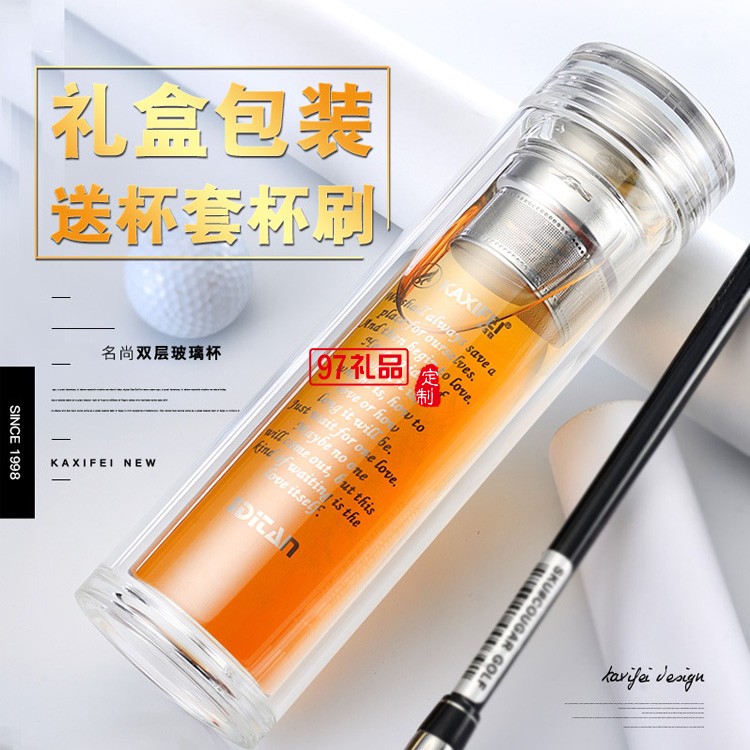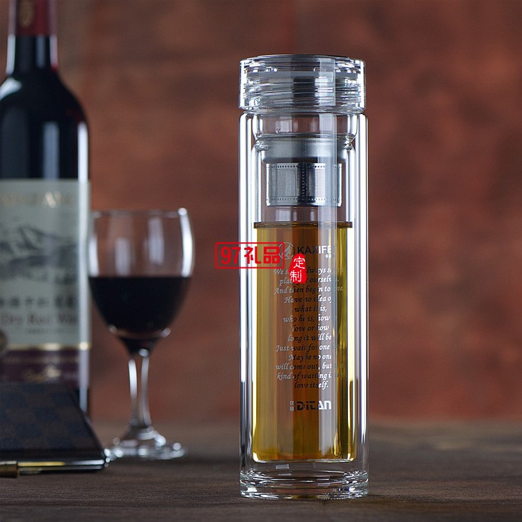 創(chuàng)意雙層高檔玻璃杯透明帶蓋過(guò)濾水晶泡茶杯禮品杯子定制