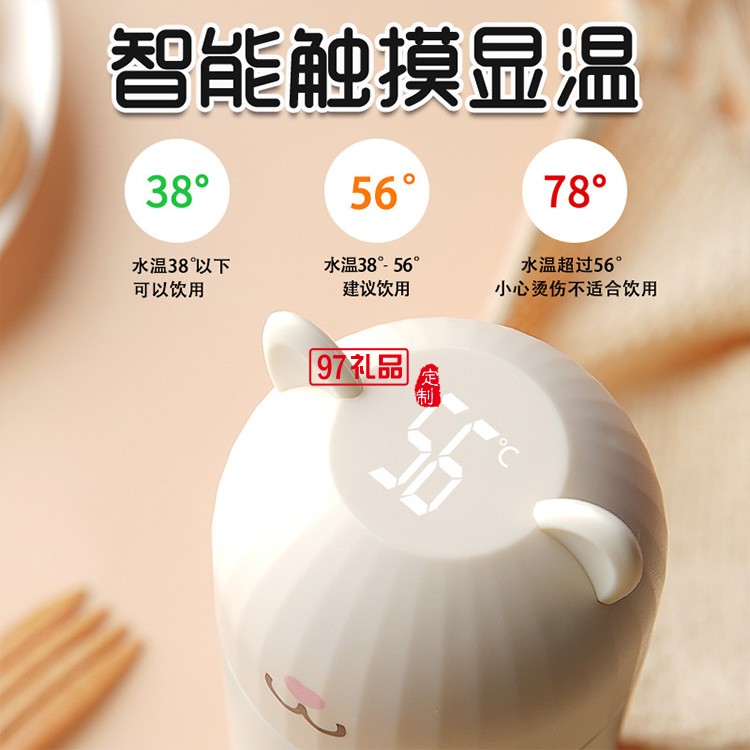 華夏銀行定制時(shí)尚喵喵保溫杯測溫?cái)?shù)顯304不銹鋼保溫杯禮品杯子定制