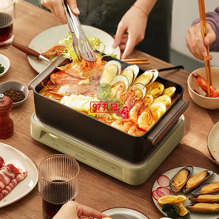 多功能鍋料理鍋家用電火鍋電熱炒鍋電燒烤爐電煮鍋不粘鍋定制公司廣告禮品