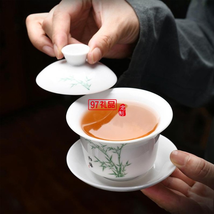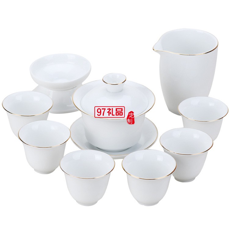 高白陶瓷茶具套裝描金蓋碗茶杯白瓷功夫茶具
