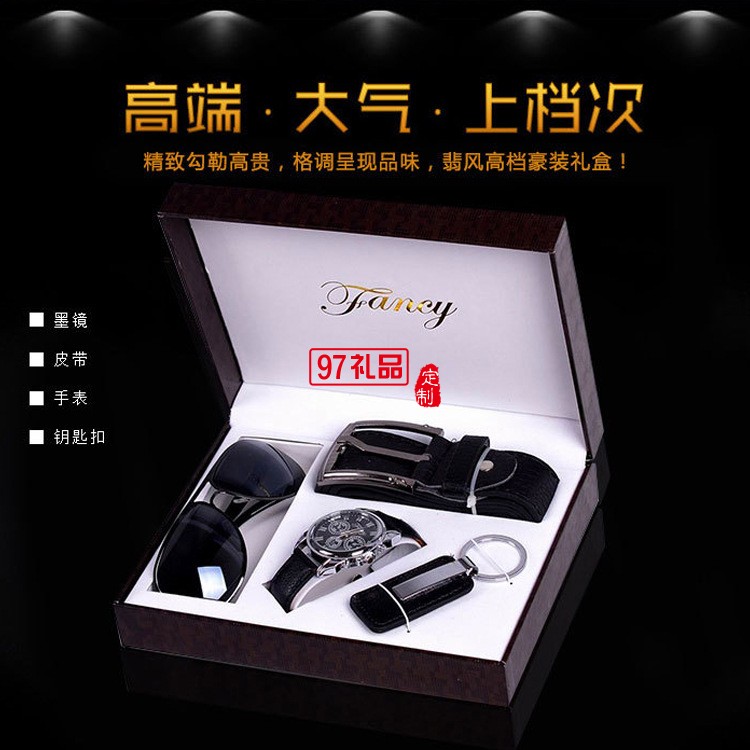 高檔手表時尚墨鏡皮帶鑰匙扣4件套套裝