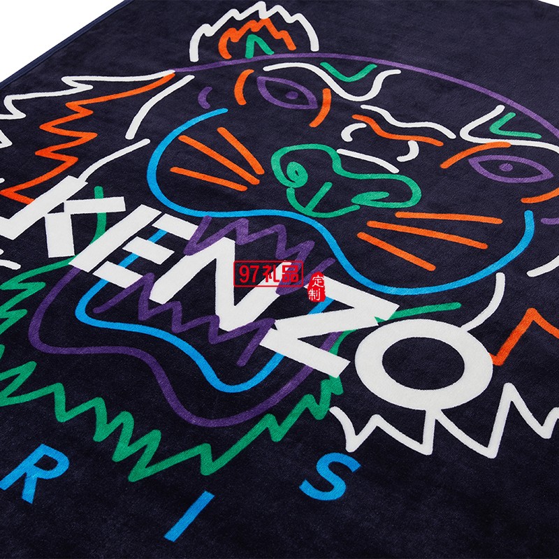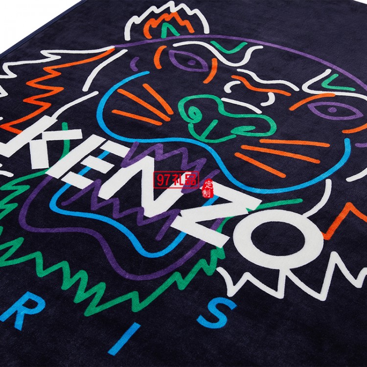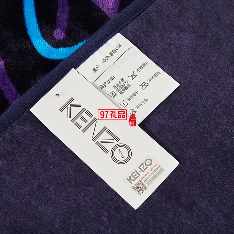 KENZO經(jīng)典法蘭絨炫彩虎頭毯(藍)