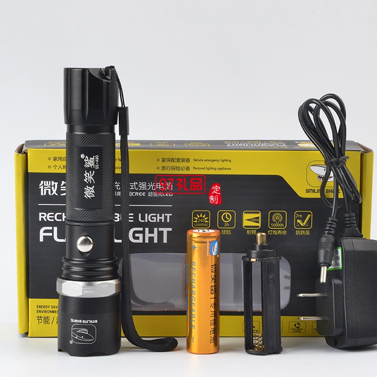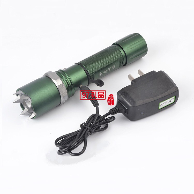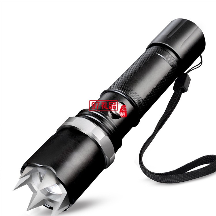 帶攻擊頭強(qiáng)光手電筒 LED可充電鋁合金手電筒 戶外防身手電