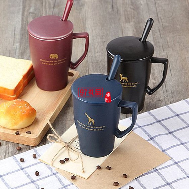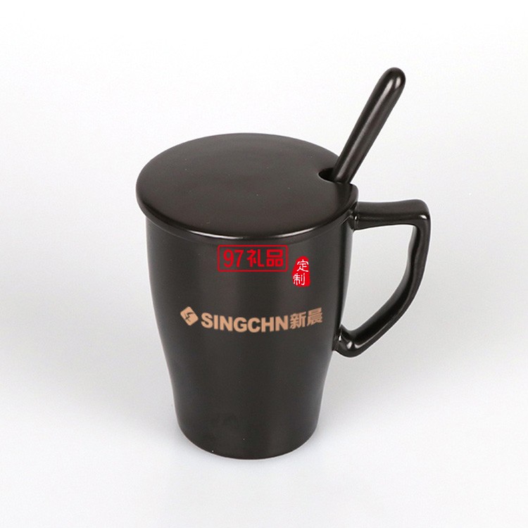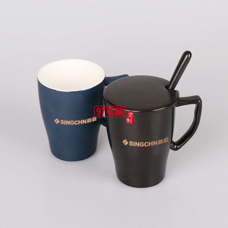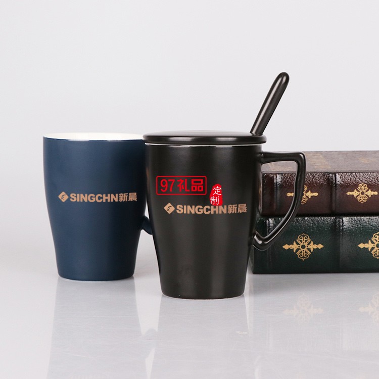 新晨醫(yī)藥定制時尚經(jīng)典磨砂啞光 帶蓋勺 咖啡陶瓷杯禮品杯子定制