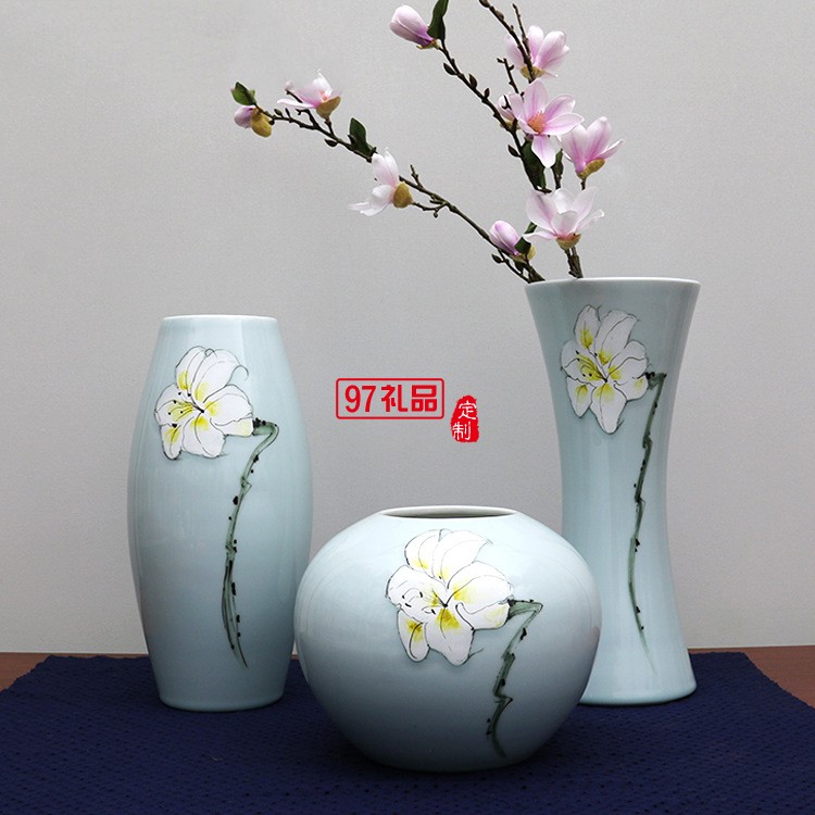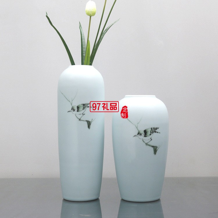 清茗居批發(fā)創(chuàng)意擺件簡(jiǎn)約現(xiàn)代家居工藝品景德鎮(zhèn)手繪陶瓷花瓶花器
