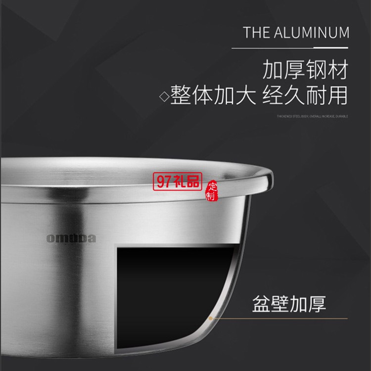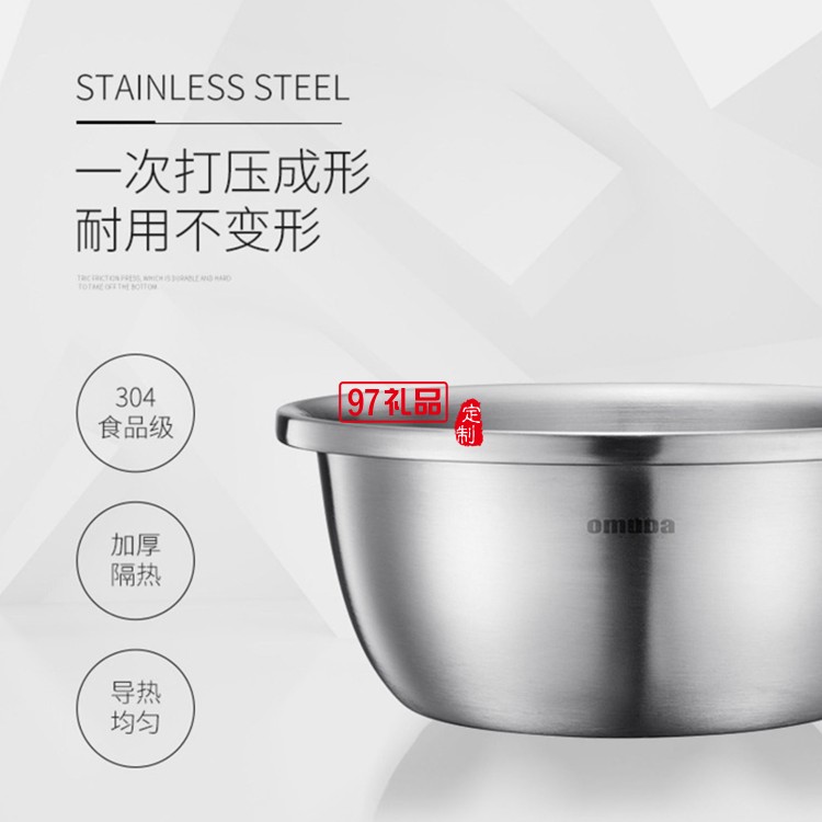 歐美達食品級304不銹鋼盆子廚房打蛋和面漏湯盆定制公司廣告禮品