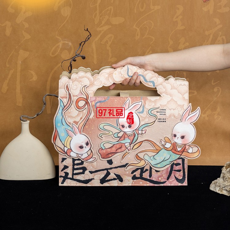 新款中秋節(jié)手提毛氈禮品環(huán)保裝飾高檔伴手禮原創(chuàng)定制