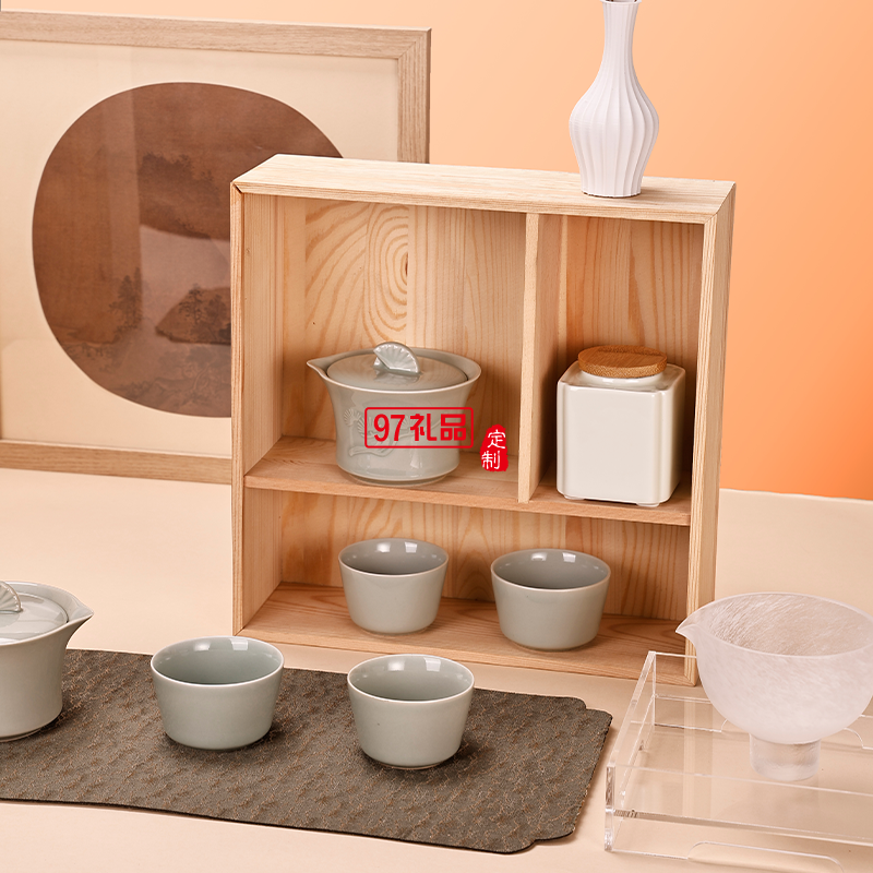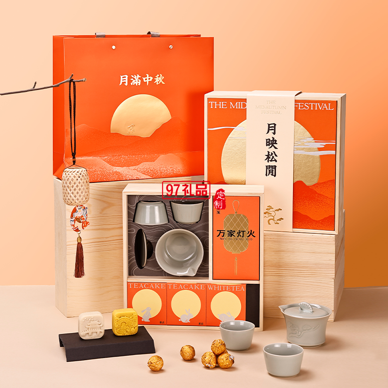 攬?jiān)隆ね樋祵庪p層中秋茶具祝福禮