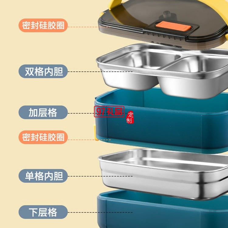 304不銹鋼飯盒食品級學生上班族分格保溫便當盒定制公司廣告禮品