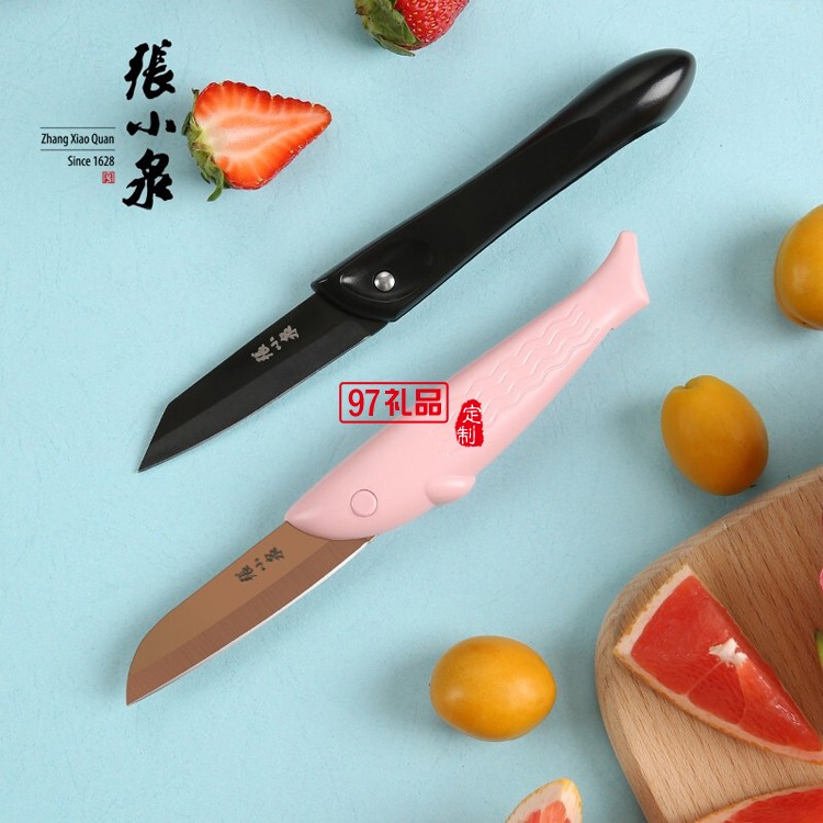 張小泉海豚灣系列水果刀瓜果刀折疊便捷削皮刀定制公司廣告禮品