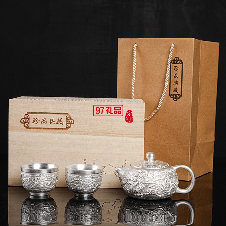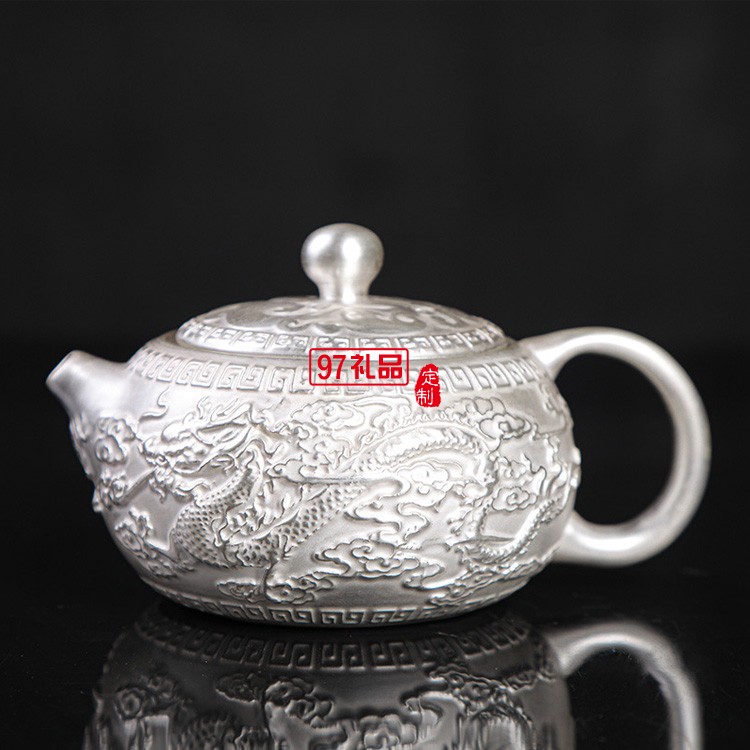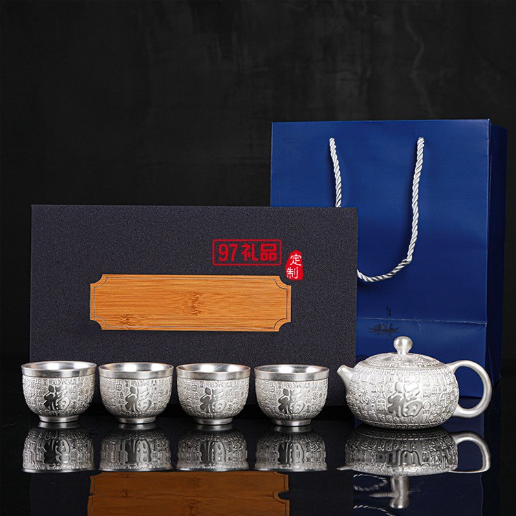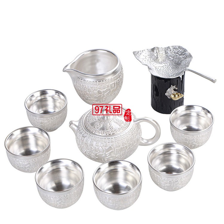 999鎏純銀功夫茶具套裝 家用簡(jiǎn)約百福陶瓷茶壺蓋茶杯自動(dòng)銀茶具