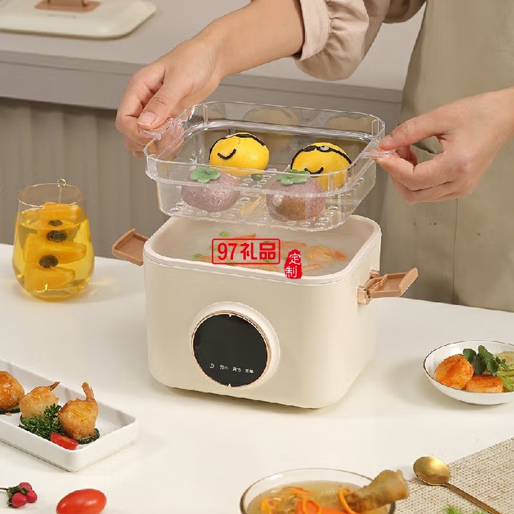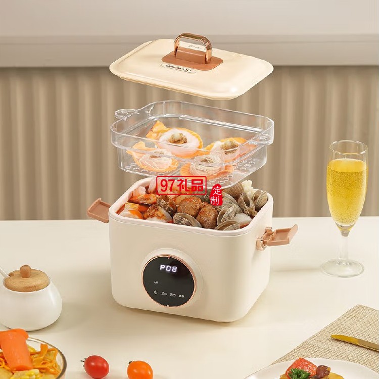 多功能料理鍋一體家用宿舍蒸煮炒煎電火鍋定制公司廣告禮品