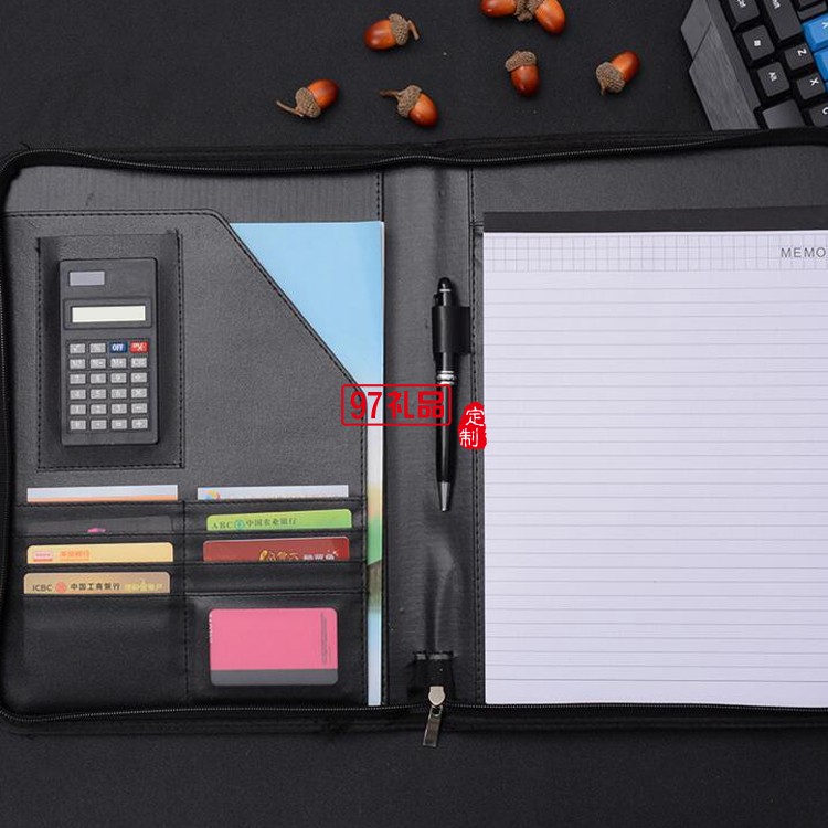 定制高檔PU皮質(zhì)拉鏈文件包 商務(wù)辦公簡(jiǎn)約多功能經(jīng)理夾