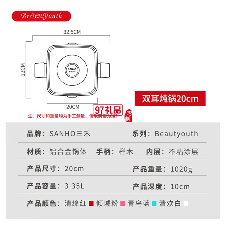 不粘鍋湯鍋雙耳燉鍋電磁爐頓湯煲湯火鍋LT2020E1定制公司廣告禮品