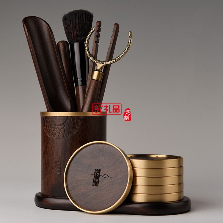 茶道六君子實(shí)木黑檀套裝功夫茶具配件茶夾筆筒茶杯墊