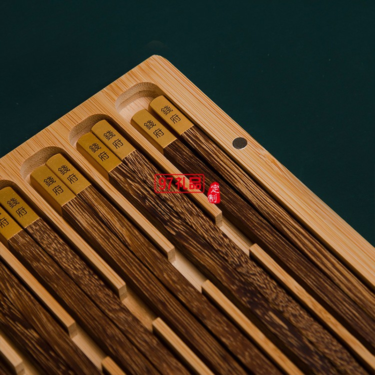 清樸堂家宴雞翅木6雙裝竹盒筷子套裝伴手禮商務(wù)禮品送客戶印LOGO