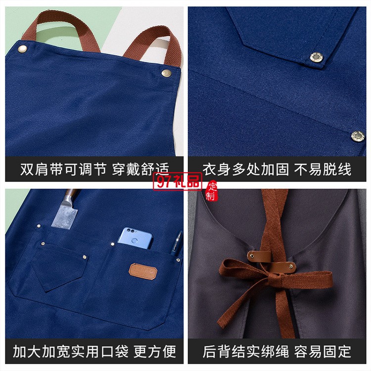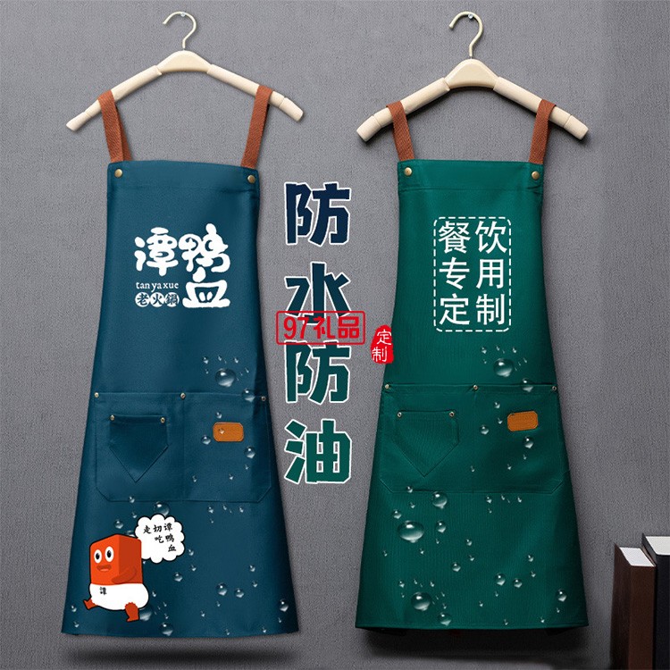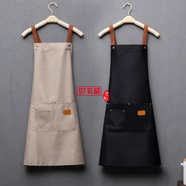 防水防油圍裙印logo女廚房餐飲奶茶咖啡店工作服圍裙家用爆款圍腰