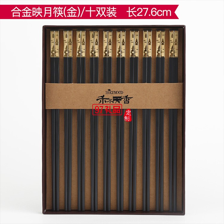 雙槍(Suncha)禾木天香 合金筷子鍍金筷子禮盒筷子套裝10雙裝