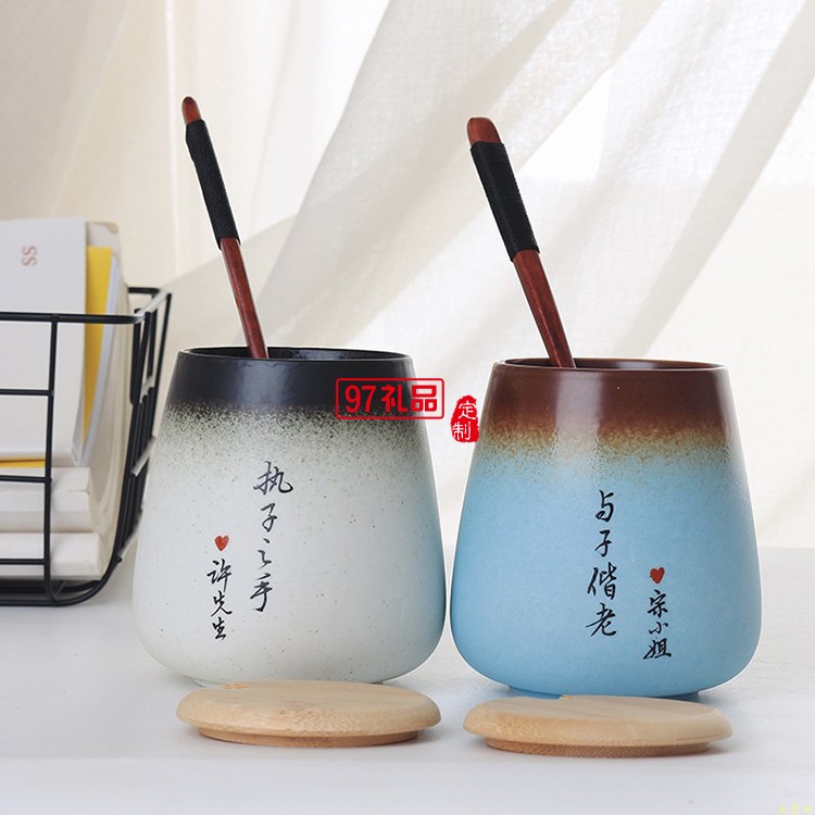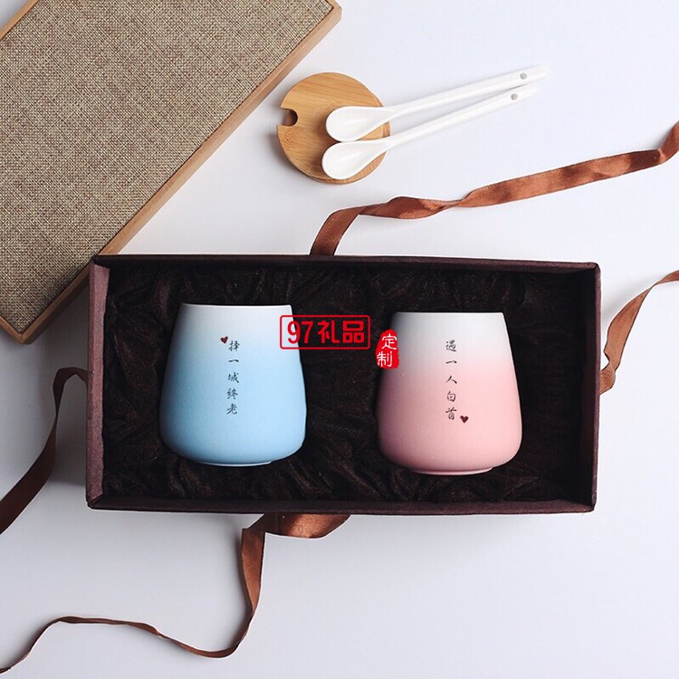 結(jié)婚禮物陶瓷杯情侶杯子 一對馬克杯帶蓋勺定制diy刻字景德鎮(zhèn)水杯