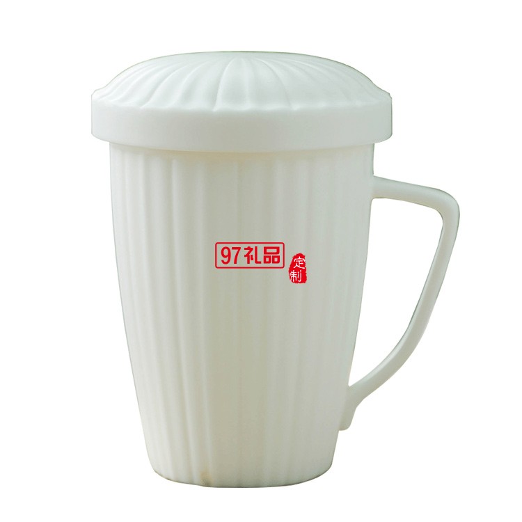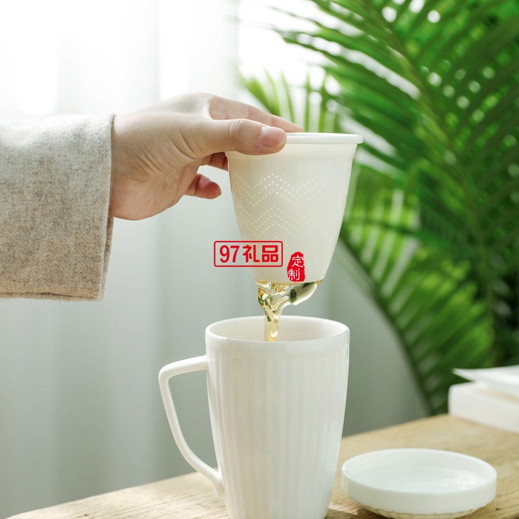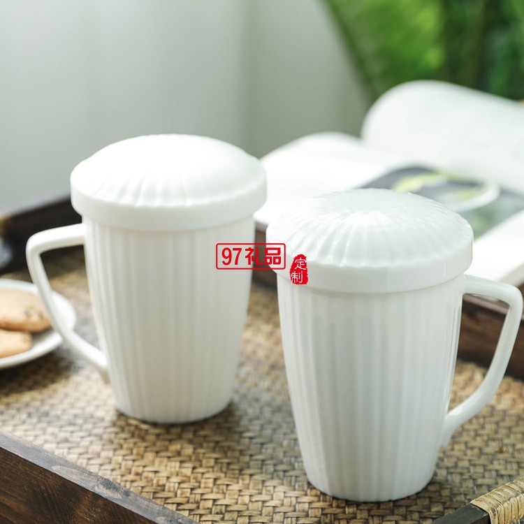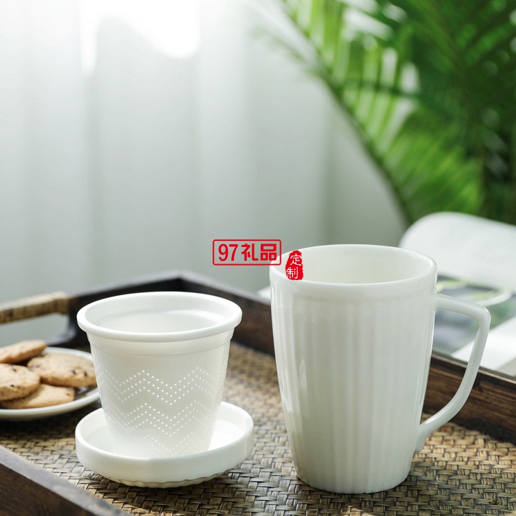 馬克杯水杯男女通用純白平底可加熱帶蓋不帶勺茶水分離杯