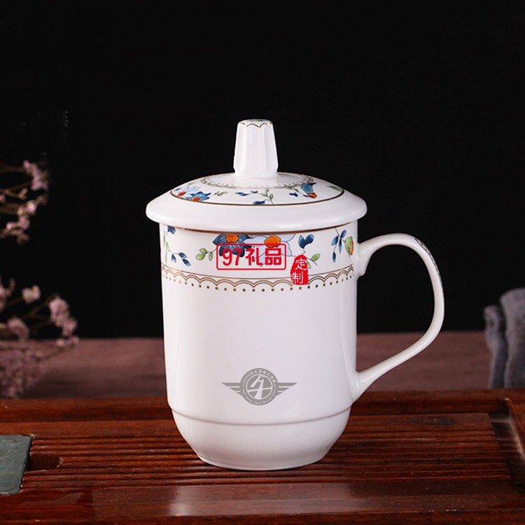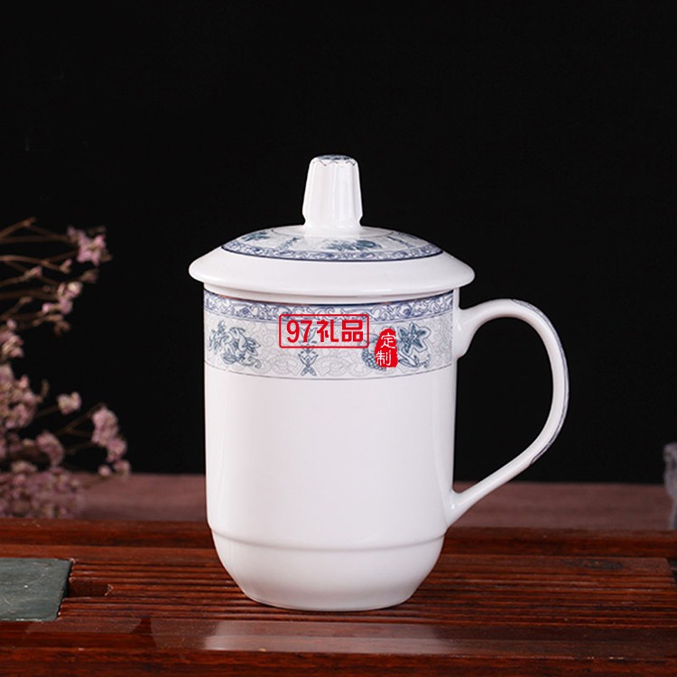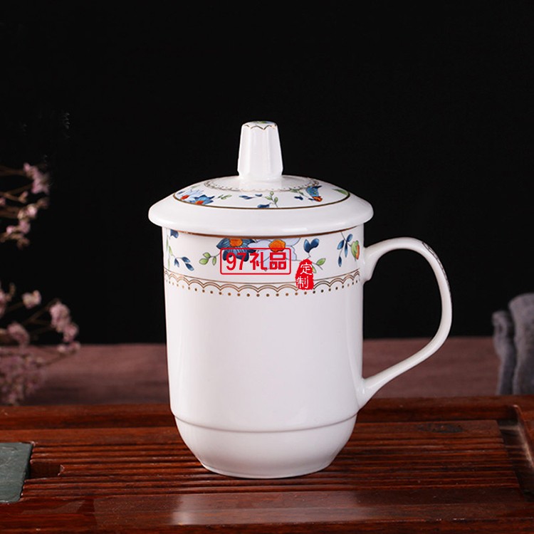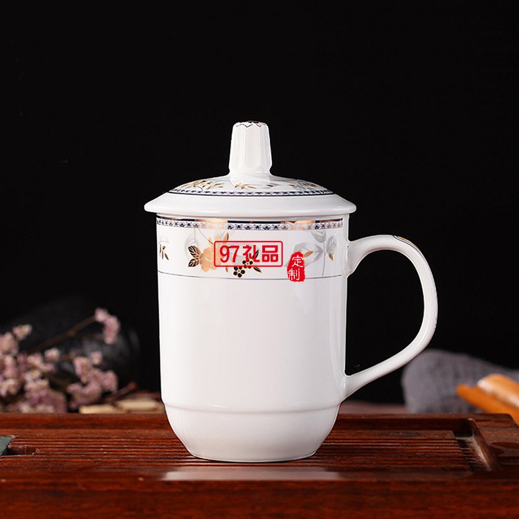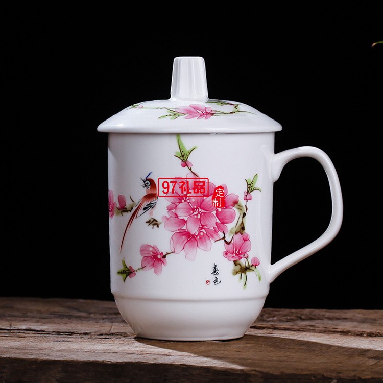 景德鎮(zhèn)陶瓷杯子帶蓋茶杯水杯辦公杯 瓷杯定制 酒店會(huì)議室泡茶杯子