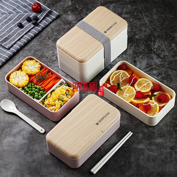 網(wǎng)紅日式雙層飯盒塑料分格便當盒跨境成人學生可微波爐 午餐盒