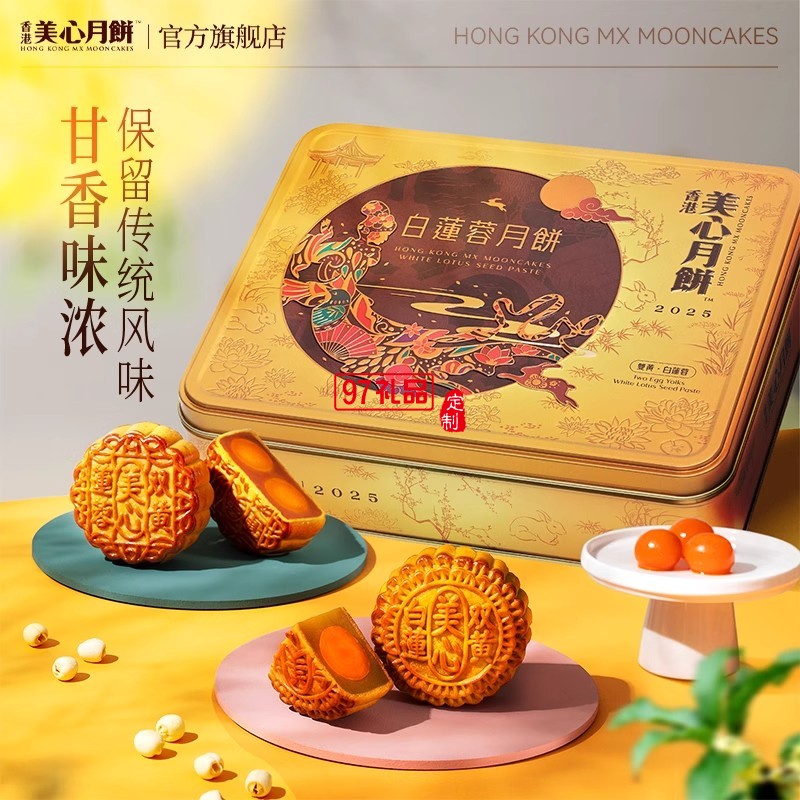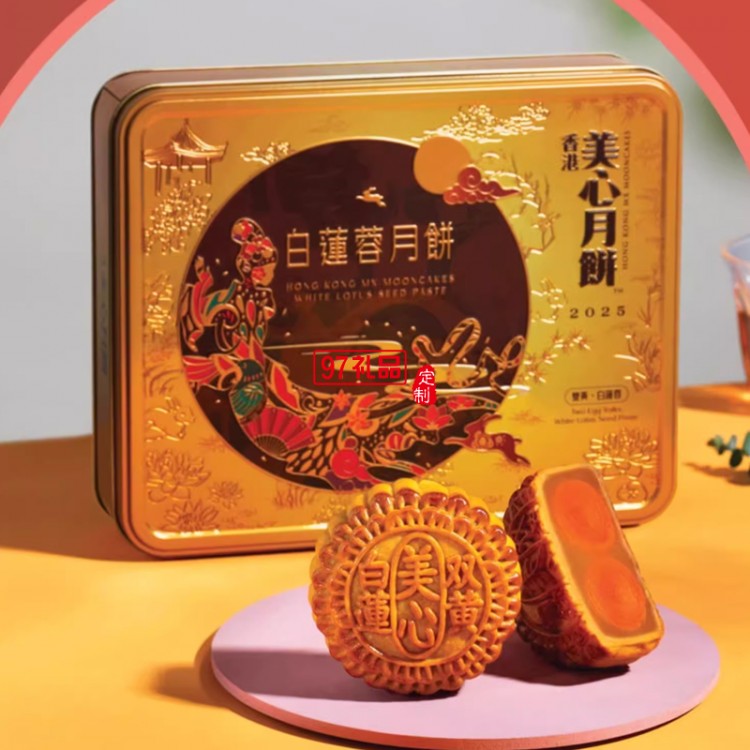 香港美心雙黃白蓮蓉中秋月餅咸蛋黃老式糕點傳統(tǒng)商務(wù)團購正品禮盒