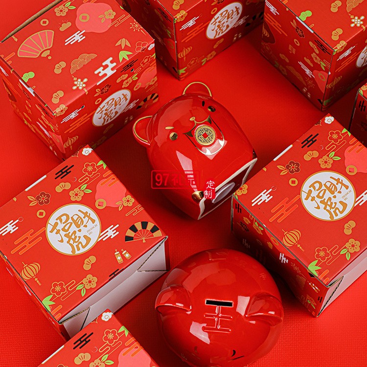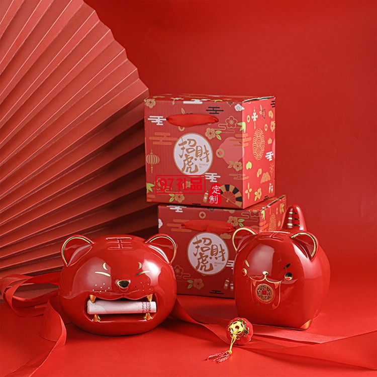 老虎儲(chǔ)蓄罐陶瓷生肖存錢罐虎年商務(wù)禮品地產(chǎn)保險(xiǎn)公司年會(huì)伴手禮