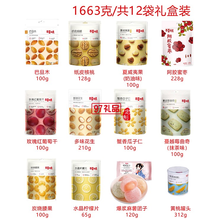 堅果禮盒 / 經(jīng)典系列-堅果零食分享包百草味:1663g/共12袋禮盒