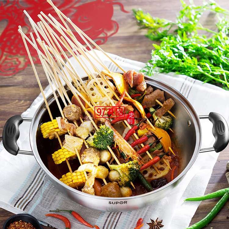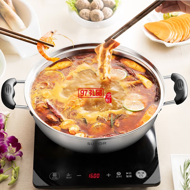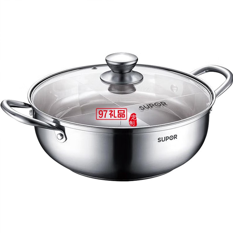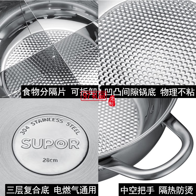 蘇泊爾湯鍋304不銹鋼火鍋復(fù)底分格鴛鴦鍋ST28Z4定制公司廣告禮品