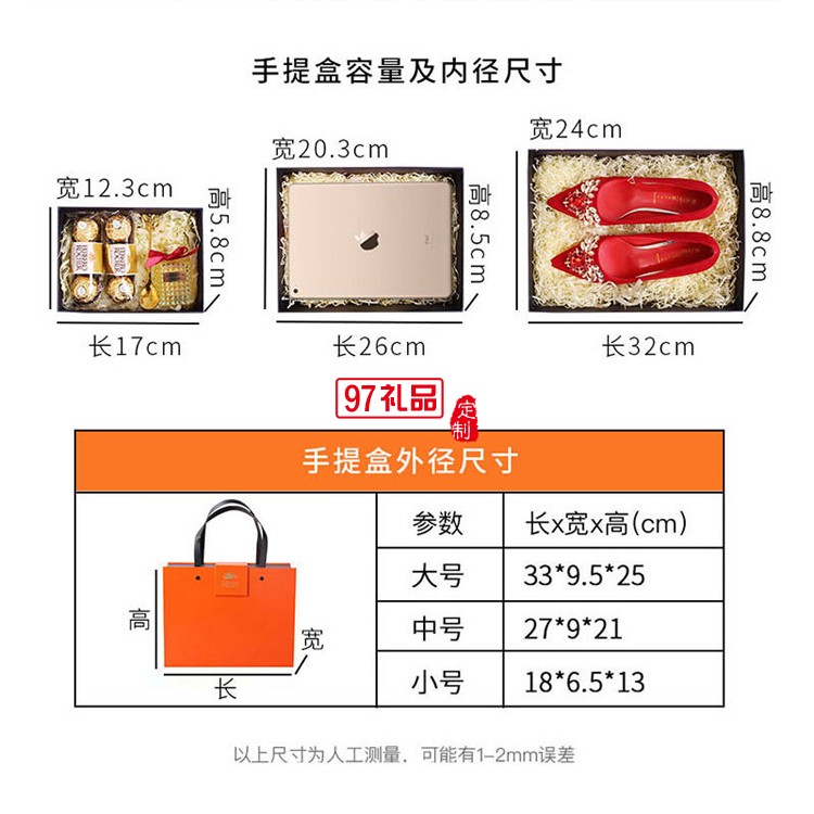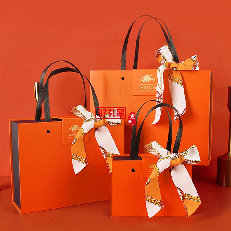手提禮品盒橙色大號包裝盒子可以定制logo