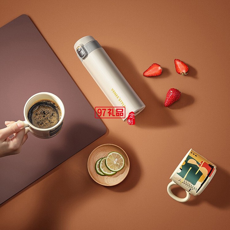 304不銹鋼保溫杯彈蓋杯陶瓷杯馬克杯套裝可定制logo
