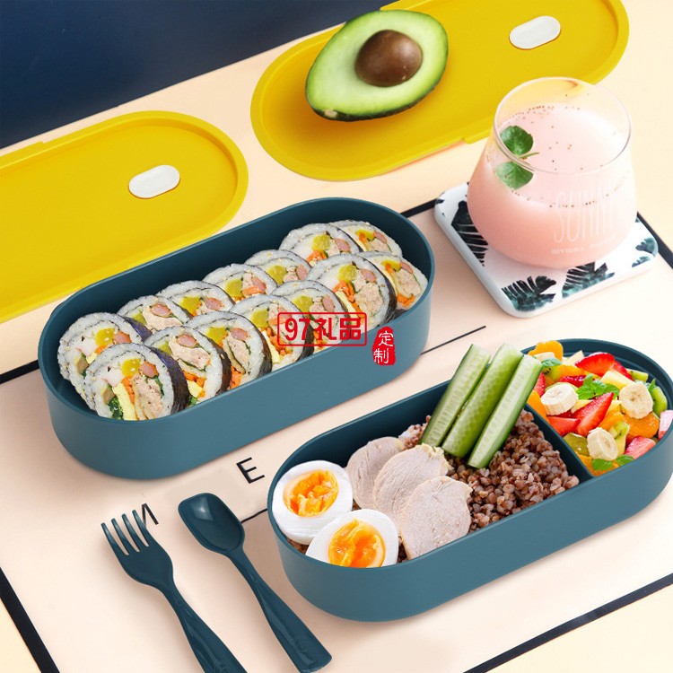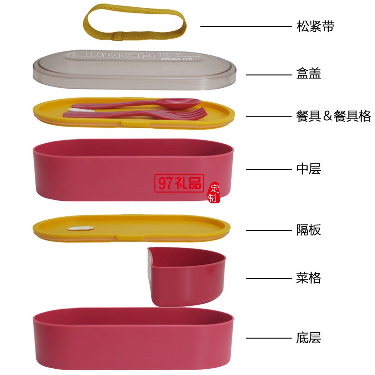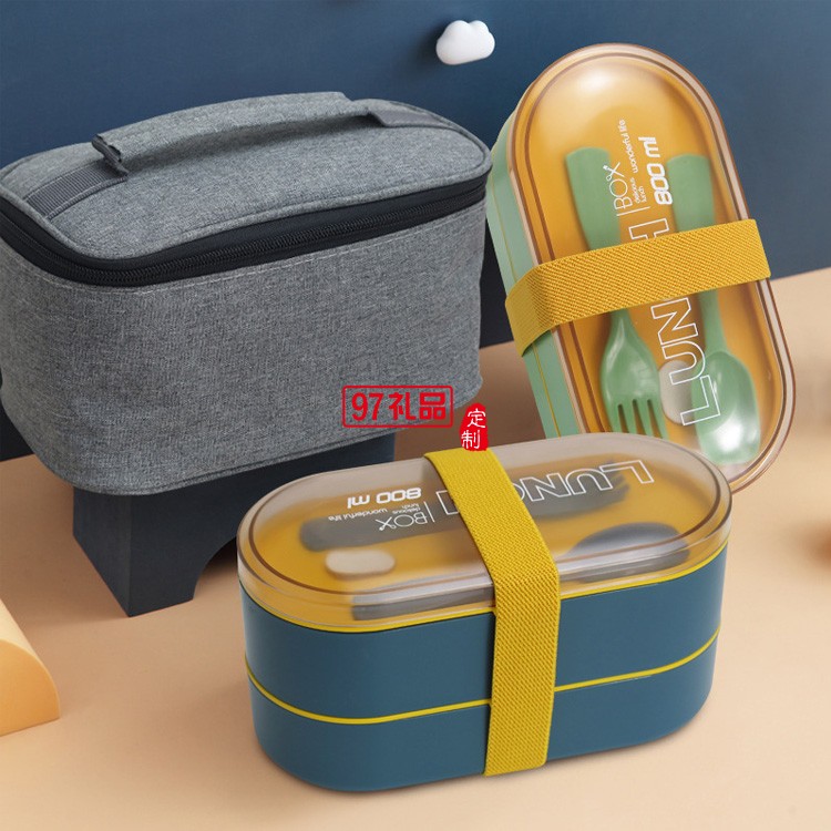 便當(dāng)盒套裝帶保溫袋叉勺雙層綁帶 保溫飯盒上班族午餐盒