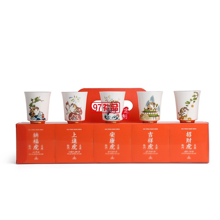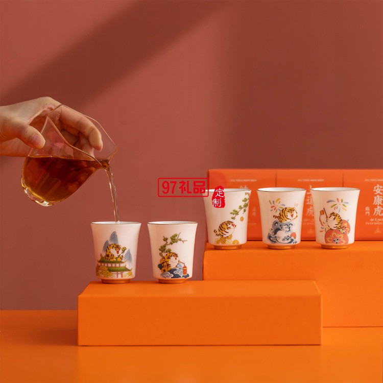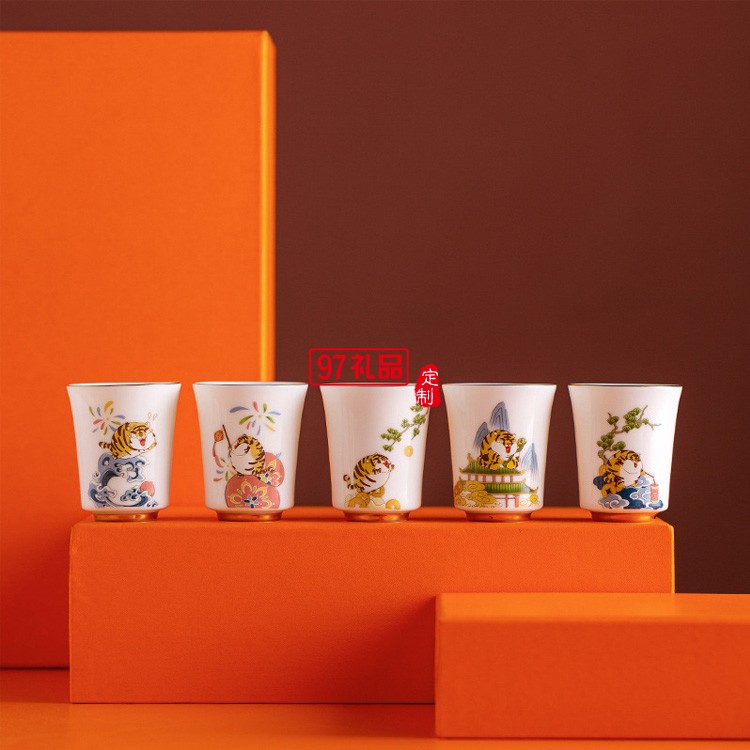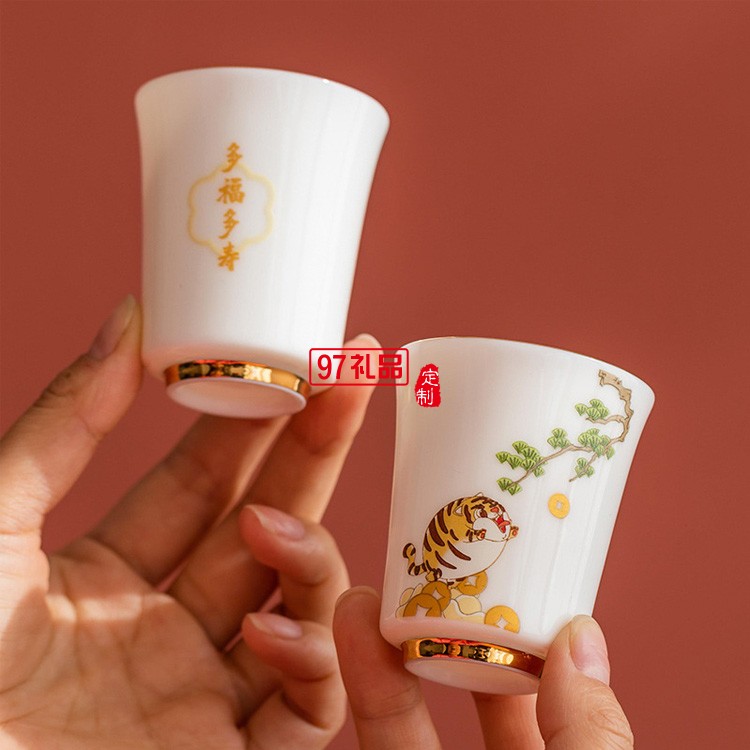 新年茶杯陶瓷品茗主人杯國潮描金禮盒開業(yè)禮物虎年伴手禮品